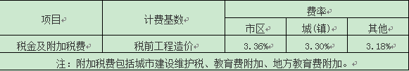 2、符合財(cái)稅[2016]36號(hào)文規(guī)定適用增值稅簡易計(jì)稅方法的建筑工程,執(zhí)行原合同或調(diào)整前的預(yù)算定額、建設(shè)工程費(fèi)用定額計(jì)算工程造價(jià),稅金按表1執(zhí)行。